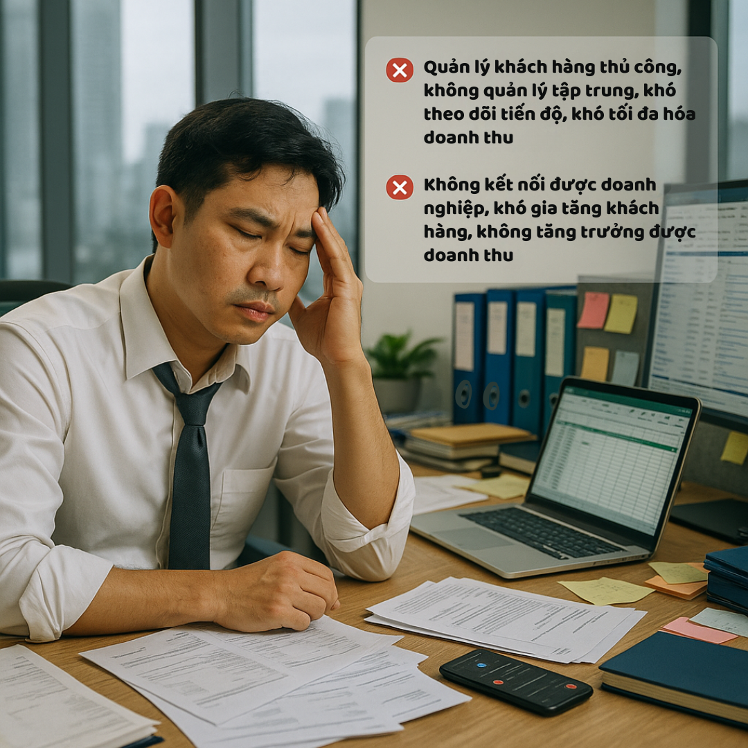 ❌ Quản lý khách hàng thủ công, không quản lý tập trung, khó theo dõi tiến độ, khó tối đa hóa doanh thu