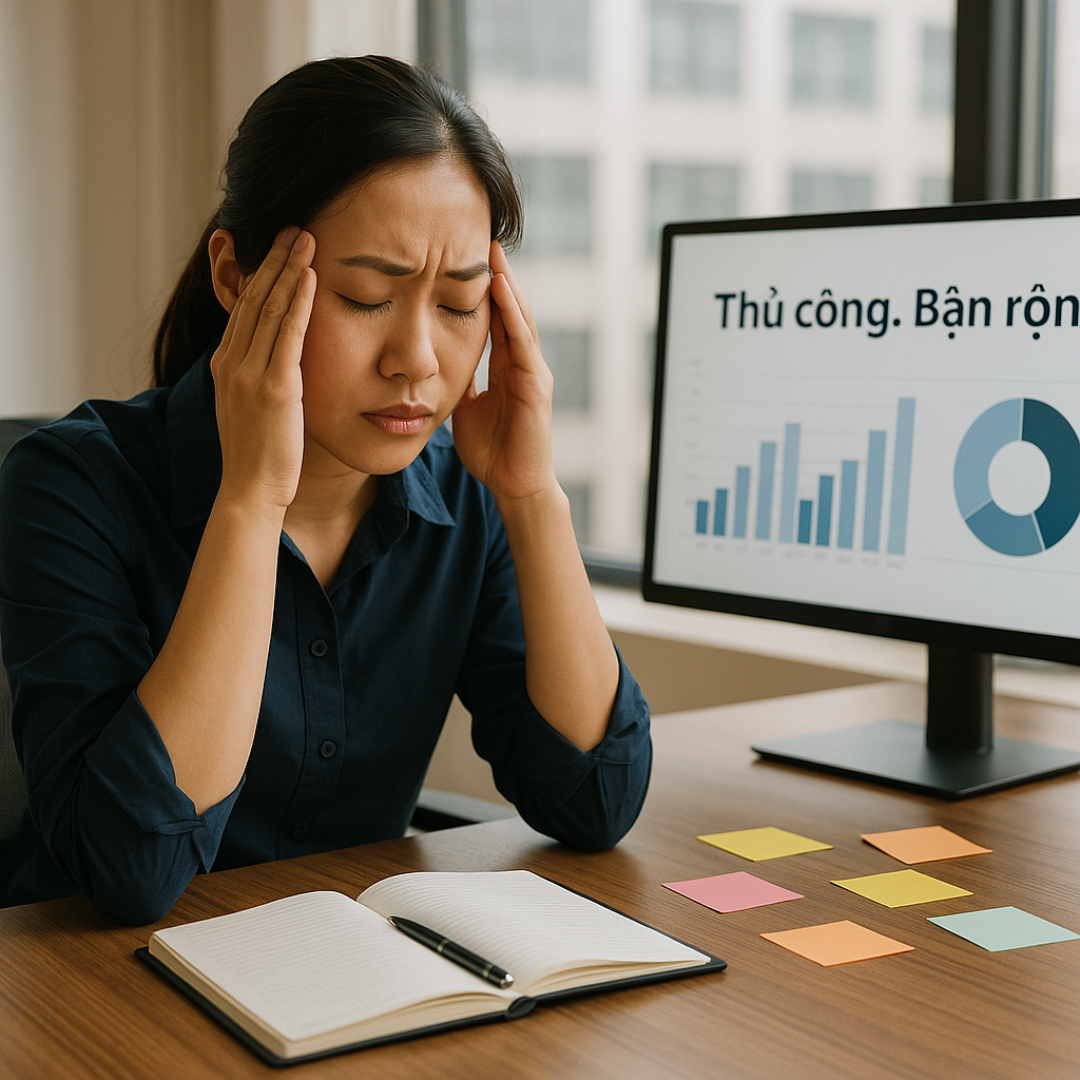 ❌ Hạch toán, báo cáo thủ công bằng excel, vừa chậm vừa dễ sai sót, mất uy tín với khách hàng