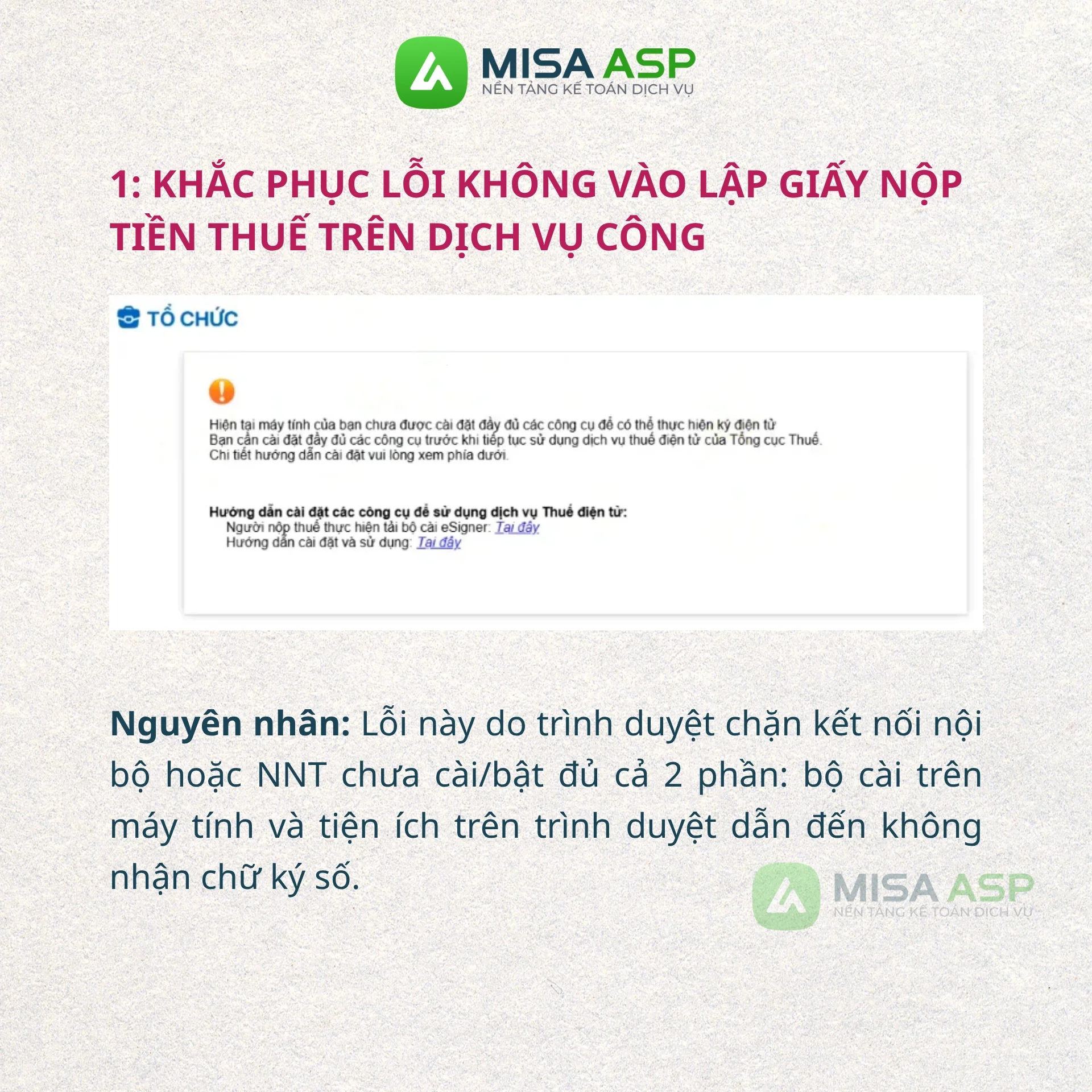 Để hỗ trợ anh chị có thể nộp thuế nhanh và chuẩn xác, MISA ASP xin chia sẻ hướng dẫn khắc phục nhanh chóng 2 lỗi phổ biến nhất ngay trong bài viết dưới đây!
