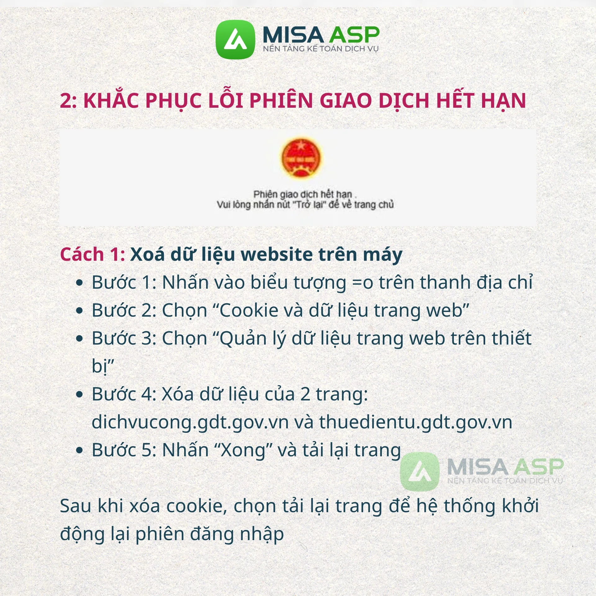 Việc xóa Cookie giúp hệ thống khởi động lại phiên đăng nhập mới sạch sẽ hơn.